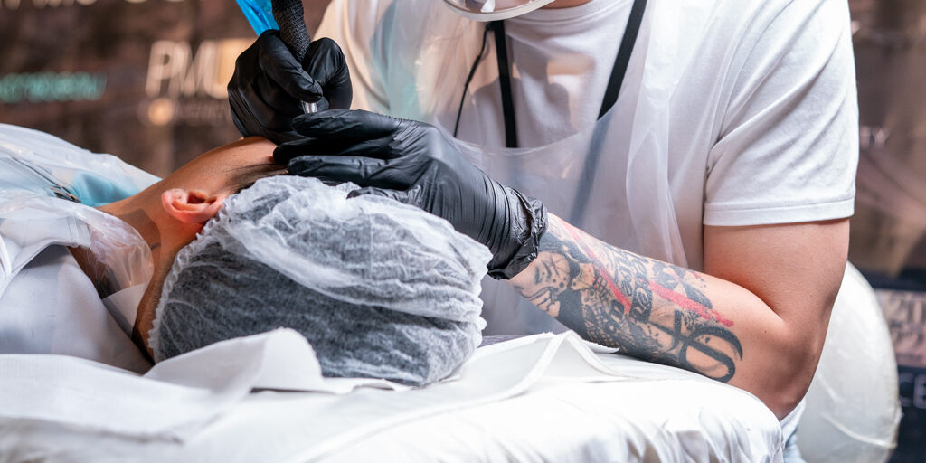 PMU artists should always make health and hygiene their top priority and take every step to ensure that any areas which could harbour fluid, blood or germs are completely covered.